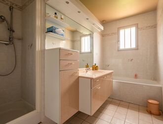 D’une surface habitable d’environ 90 m2, elle se compose d’une entrée avec placard, d’un double séjour lumineux donnant directement accès à une grande terrasse de 35 m2 sans vis-à-vis et au jardin, d’une cuisine aménagée, de trois chambres, d’une salle de bain, d’une salle d’eau et d'un WC séparés.
